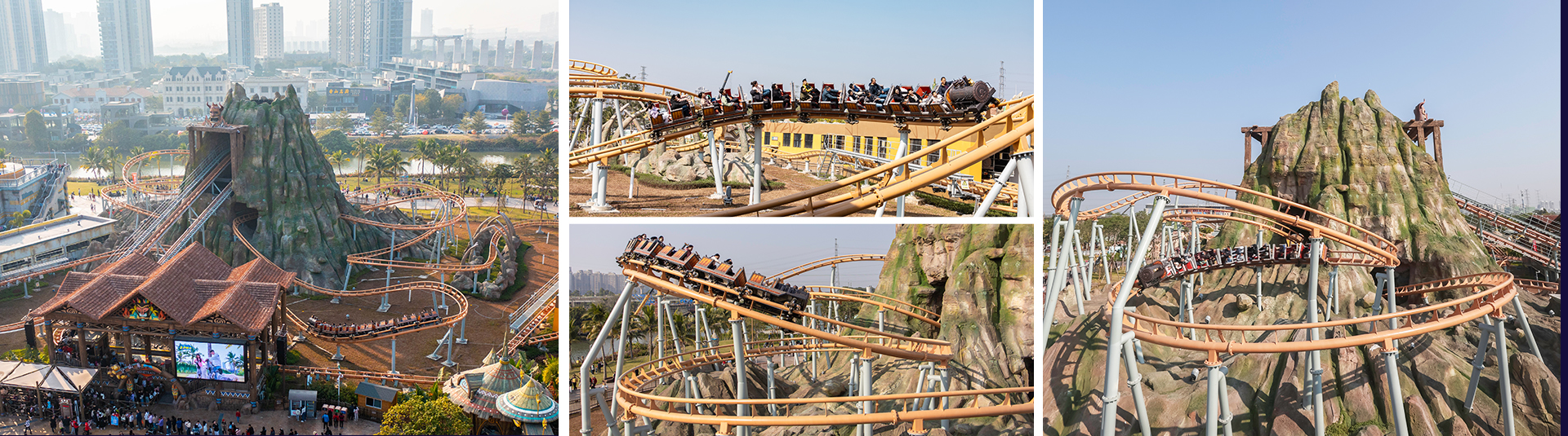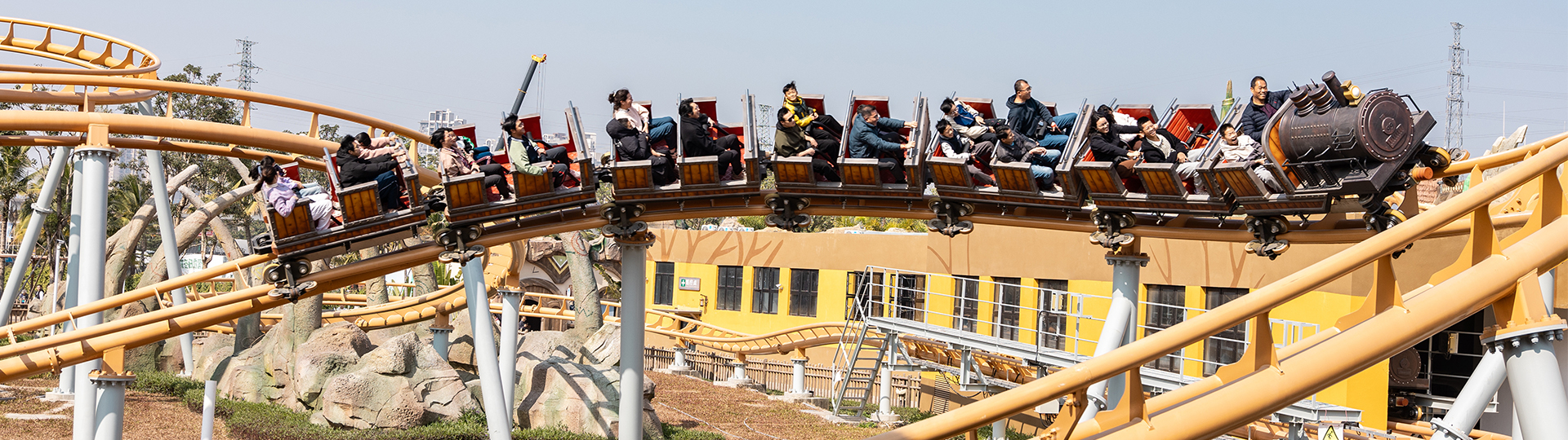 礦山車模仿古代礦山列車運(yùn)行模式,采用仿古式的火車造型,游客仿佛置身于礦山現(xiàn)場。全程路軌設(shè)有兩個(gè)提升段,配合先進(jìn)變軌技術(shù)、減震膠與柔和的永磁制動,為乘客乘坐帶來舒適靜謐的體驗(yàn)。同時(shí)獨(dú)特的壓腹式壓杠結(jié)構(gòu),確保包括?度1.1m以上兒童可被有效束縛,增大游客受眾范圍。