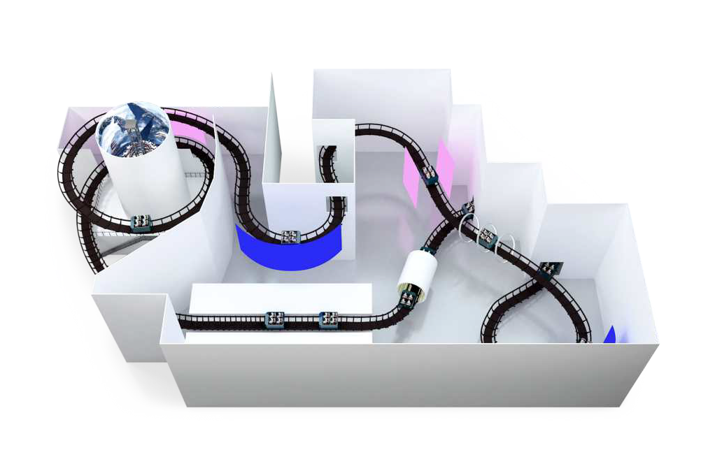 互動軌道?是?款室內(nèi)休閑游樂設(shè)備,將3D交互游戲和過??兩種元素有機(jī)結(jié)合,乘客在游玩過程中既能體驗3D?體的主題視覺效果,?能體驗過??刺激,還互動參與激烈的射擊競賽,是?款新穎的架空游覽?項?。