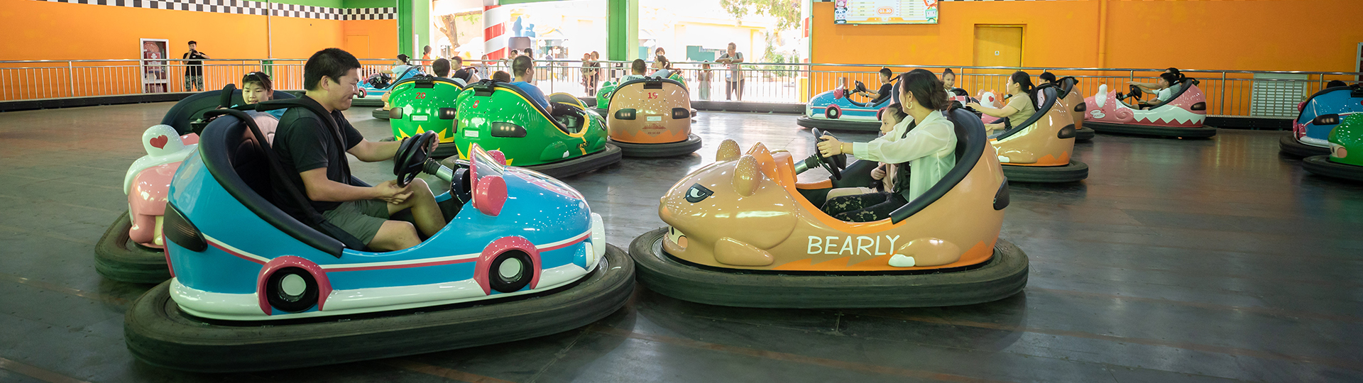 積分碰碰?在傳統(tǒng)碰碰?游玩?式基礎(chǔ)上為?體增加更多互動(dòng)效果,在保持項(xiàng)?最根本的“碰撞”樂(lè)趣之余,加?簡(jiǎn)單明了的“游戲化”內(nèi)容,讓“碰撞”帶來(lái)更多樂(lè)趣和玩法;積分碰碰?建設(shè)于室內(nèi),整個(gè)游玩過(guò)程會(huì)有視頻積分動(dòng)畫(huà)?配合。通過(guò)對(duì)場(chǎng)地增加投影、光效等更多主題內(nèi)容,配合場(chǎng)外屏幕實(shí)現(xiàn)更豐富的沉浸式體驗(yàn)效果。