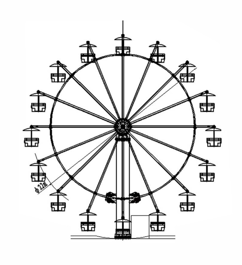 ?型摩天輪可承載48?,主要由?柱、塔頭、旋轉頭、轉輪、避雷針、吊籃、驅(qū)動裝置和電?系統(tǒng)等組成,并配備燈光和?響。設備外觀萌趣、造型?巧精致,能為樂園??提升歡樂?氛,是公園和游樂場很受歡迎的觀覽游樂設備。