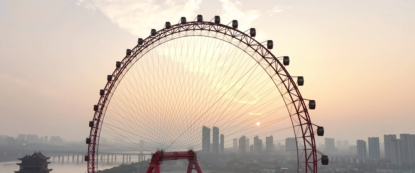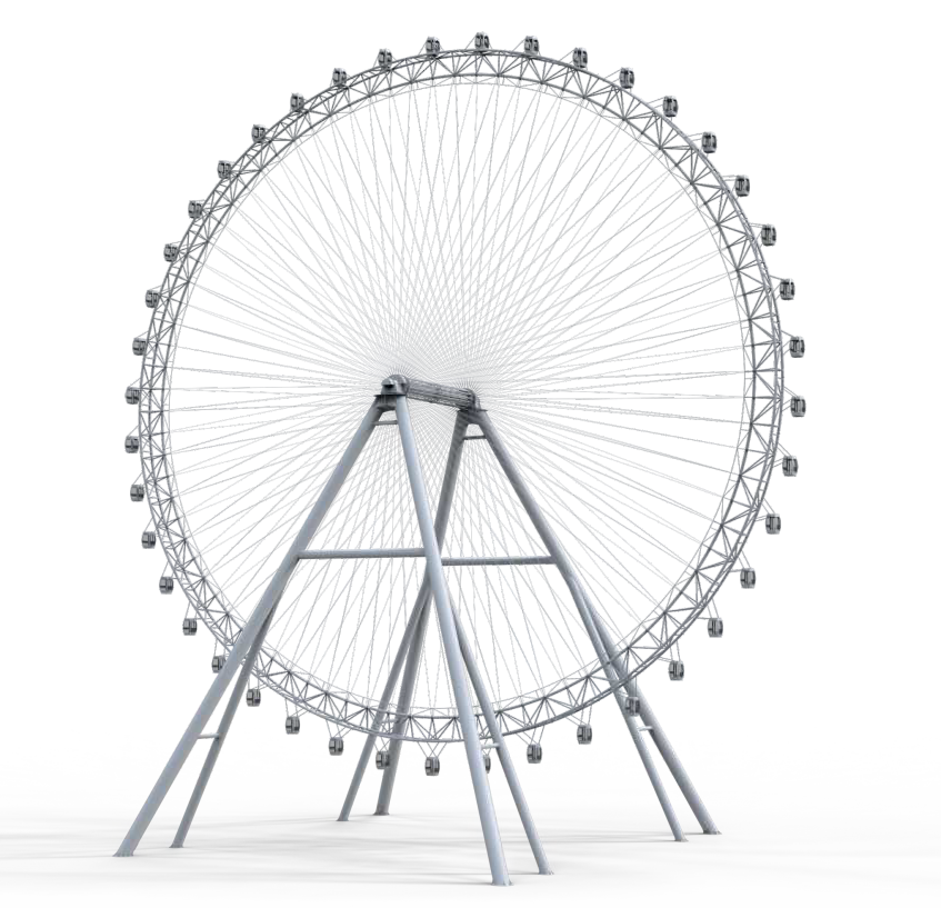 128?觀覽?,乘客從站臺乘座艙徐徐升起,升到?空,環(huán)繞?圈后?回到站臺,獨特的運動?式,提供了獨特的空間體驗,再配以明麗變幻、動感迷?的燈飾,讓乘客充分體會在?地和?空中循環(huán)往復的同時,遠眺美景。
