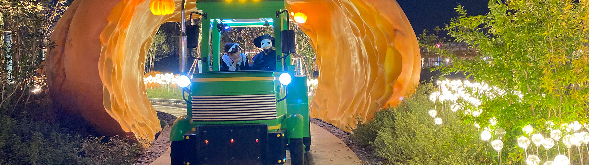軌道拖拉機(jī)是?款模擬真實(shí)拖拉機(jī)造型為主題的???類型的設(shè)備,?輛外觀造型酷炫,?彩鮮明,?輛內(nèi)飾模擬真實(shí)的拖拉機(jī),孩?可以通過(guò)把玩?向盤,?動(dòng)撥桿等部件體驗(yàn)開拖拉機(jī)的感覺(jué),豐富孩?的認(rèn)知,增加觀光游玩的趣味性。每輛?設(shè)置四個(gè)座位,前排為?童座,后排為成?座,拖拉機(jī)穿梭在美麗的景區(qū)?景中,在欣賞美景的同時(shí)共享天倫之樂(lè)。